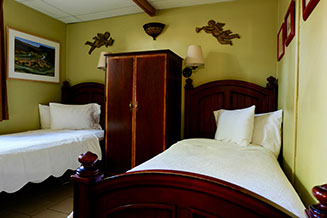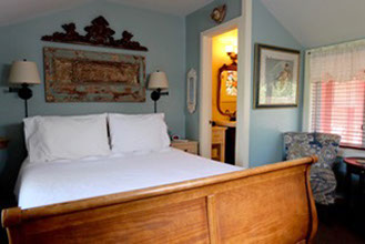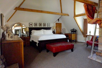 The Eaves Suite, with one California King bed & 3 twins; private bathroom with antique tub. Rate is for 2 people; additional guests are $20 per night. Starting at $189. Optional breakfast $5 for one.